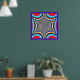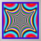 Illusion optique : Entre autres, le design pointu et les couleurs interchangeantes donnent à cette image un effet pulsant. La forme déformée du web ajoute à l'illusion d'optique d'un mouvement de danse.