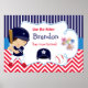 Poster de célébration de l'anniversaire de baseball Cute Dark Hair Boy pour cette occasion spéciale. Faites de votre enfant un personnage spécial avec son propre poster accroché au mur. Le texte peut être modifié en fonction de vos propres détails. Oeuvre de Zenware Designs et MyClipartStore.(110)