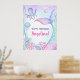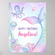 Posters d'anniversaire à thème nautique illustrant les fonds marins, pieuvre mignonne, adorable méduse et une queue magique de sirène.