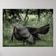 Un mâle de Turquie arborant ses plumes de queue entourées d'arbres et d'herbe verte sauge juste un soupçon de couleur sur cette photo presque noir et blanc