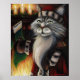 Poster d'art de Noël du chat de Noël du Père Noël