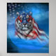 Drapeau de tigre blanc, esprit de force et d'indépendance. Cette peinture d'un tigre blanc enveloppé d'un drapeau américain, avec le tigre et le drapeau en devenir un, fait une belle et inspirante affiche ou imprimé d'art. De la collection Patriotique d'art de Carol Cavalaris.