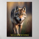 L'affiche est montrée avec une photo d'un loup sauvage de Yellowstone. Customisez cet objet ou achetez tel quel. Image sous licence