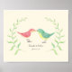 Affiche illustrant l'aquarelle des oiseaux mignons embrassant des oiseaux. Facile à customiser - il suffit de changer de nom et de date à votre choix. Vous ferez un cadeau unique de mariage, de fiançailles ou d'anniversaire en un rien de temps!