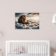 Lion et agneau dans le ciel avec affiche d'art des nuages.