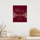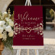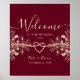 Faites une déclaration élégante avec notre affiche de bienvenue de luxe chic rouge bordeaux mariage. Insufflé d'une touche bohème, ce poster est orné d'un coeur de corde romantique et de fleurs vintages en or, ajoutant une touche de romantisme à votre signalétique de bienvenue. Donnez le ton de votre célébration avec ce design sophistiqué mais charmant, accueillant vos invités avec chaleur et élégance.