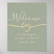 Elégante, moderne, minimaliste, sauge verte mariage bienvenue affiche avec faux coeur de corde or et simple écriture calligraphie manuscrite.
