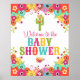 Poster d'accueil à thème Fiesta - Baby shower aux fleurs colorées, cactus et sombrero.