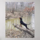 Cette affiche montre une photo d'un hound noir et bronzé reniflant l'air de la rivière.