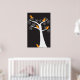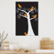 Sur une affiche, cinq adorables oranges abstraites pendent dans un arbre blanc contre un arrière - plan noir