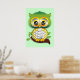 Cute Green Baby Owl with big eyes, looks like a paper craft.