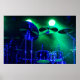 Spotlit cymbales sur une scène brumeuse avec un lavage vert.