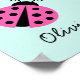 Pink ladybug fille chambre bébé décoration de décoration de chambre bébé design. Décor mignon poupée pour chambre d'enfants ou chambre bébé. Rose et blanc avec monogramme personnalisé, citation ou nom. Idée de cadeau sucré pour nouveau bébé, nouvelle maman, mère à être. Faites-en un pour fille, petite-fille, petit-enfant, etc. Illustration d'insecte animal de la dame inspirée par la nature. bleu turquoise / Mint vert arrière - plan personnalisable.