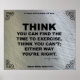 Cette affiche de fitness motivationnelle en acier et noir présente une citation de fitness de l'auteur et designer Felicity Luckey. Ce poster de gym fait partie d'une série de 52 affiches motivantes de gym pour l'inspiration de l'exercice et la motivation de l'entraînement. Voici la citation de l'exercice : PENSEZ QUE VOUS POUVEZ TROUVER LE TEMPS D'EXERCER, PENSEZ QUE VOUS NE POUVEZ PAS; DE TOUTE FAÇON VOUS AVEZ RAISON. ~ Felicity Luckey
