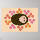 Cette affiche présente une jolie bande dessinée d'un petit hérisson brun épicé, enroulé dans une boule qui semble endormi. Le Hérisson est entouré de jolies fleurs. Le hérisson est marron avec un visage crème et les fleurs sont rouges, orange et roses.