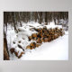 Scène hivernale d'un tas de rondins enneigés dans les bois