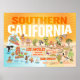 Bright and charmant dessin animé offre une vue imprenable sur la Californie du Sud - les personnages mignons profitent du soleil chaud de Californie qui présente Los Angeles, San Diego, Riverside, Palm Springs, Anaheim et Long Beach ainsi que les villes frontalières de Tijuana, Tecate et Mexicali.
