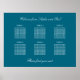 Turquoise 6 Table Mariage Seating Chart Poster, s'il vous plaît personnaliser les noms du couple et les noms des invités ainsi que l'un des autres textes que vous souhaitez personnaliser. Une affiche élégante avec un élégant texte blanc sur un arrière - plan turquoise profond.