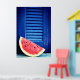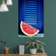 Photographie de vie morte de pastèque et de fenêtre bleue.