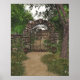 Un sentier sinueux mène à travers une porte en fer forgé ornée dans un jardin caché et une maison cosy plus loin dans cette oeuvre numérique 3D originale, créée à Vue D'Esprit par l'artiste Jayne Wilson