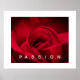 Affiche illustrée avec une photo d'une belle rose rouge avec le texte PASSION. Customisez cet objet ou achetez tel quel.