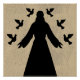 Le graphisme d'inspiration chrétienne présente la silhouette de Jésus avec des bras accueillants et un troupeau de colombes symbolise l'espérance, la foi et la paix.