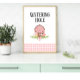 Poster d'une station de boisson en vichy rose et florale pour la fête d'anniversaire de votre enfant à la baryade !
