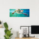 Photo d'une tortue de mer à tête germinale nageant. Voici la photo numéro trois sur les cinq photos.