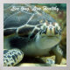 Une affiche amusante avec une tortue géante et un texte qui dit "Vis Longue Vie, Vis Sain".