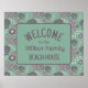 Cette affiche sur le thème de la maison de plage est aqua, prune, mauve et ivoire avec un motif balnéaire de coquillages, de dollars de sable et d'étoiles de mer. Le monogramme du nom de famille peut être personnalisé, et la typographie "maison de plage" peut être laissée telle quelle, ou changée en "cuisine", "yacht" ou "chalet", ou tout autre qui s'applique. Vous pouvez également changer le mot Bienvenue si vous le souhaitez.