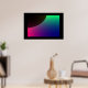 Cette affiche présente une image numériquement qui ressemble au croissant d'une planète sombre entourée d'une aurore cosmique de vert, bleu, violet et rose.