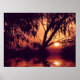 coucher de soleil orange profond avec la silhouette de la nature du gommier australien et des feuilles - réflexion soleil sur l'eau ondulante