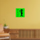 Un petit homme vert qui dit "paix" en noir avec les yeux vert vif contre un arrière - plan vert.