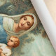 L'imprimé d'affiche de la Madonna bleue française présente une image d'une belle carte sainte française antique imprimée à la fin du XIXe siècle. Jésus et la Bienheureuse Mère sont entourés de colombes blanches et d'un paysage boisé brumeux.