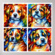 C'est une affiche mignonne parfaite pour un amoureux des chiens avec 4 adorables chiots stylisés aux couleurs vives.