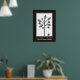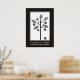 Arbre stylisé noir blanc sur affiche d'impression motivationnelle arrière - plan blanche, affichant un arbre avec des feuilles et des fruits en noir et blanc de style minimal. Le teaxt dit "CLIQUEZ UN ARBRE, IL VOUS RAPPROCHE DU CIEL".