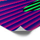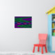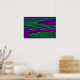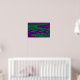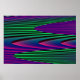 Cette affiche présente une image créée numériquement qui ressemble à une série de vagues douces qui ondulent contre un rivage calme. Les vagues sont de tonalités néons vives, vertes, roses et bleues, de qualité 3D.