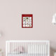 Chaque carré de cette affiche motif en grille rouge contient une aquarelle colorée représentant chacun des douze jours de Noël avec le numéro de chaque jour dans le coin supérieur gauche. L'expression "Mon véritable amour m'a été donné" en blanc en haut complète le design. À partir de mon numériquement d'origine créé image.