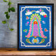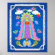 Notre-Dame de Guadalupe, aussi connue sous le nom de La Virgen de Guadalupe, ou la Vierge Marie occupe une place spéciale dans la culture et la vie religieuse du Mexique, et des catholiques partout. Des statues et des peintures dans les sanctuaires de Notre Dame sont vues partout au Mexique. Ma représentation folklorique de Notre-Dame de Guadalupe, flottant au-dessus d'un Tcherubin, et entourée de coeurs sacrés, est présentée dans plusieurs coloris différents, et sur différents produits.