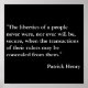 Cette citation de Patrick Henry est parfaite pour la situation "Rapide et Furieuse" avec le procureur général Eric Holder et le président Obama. Sur un arrière - plan noir, en lettres blanches, "les libertés d'un peuple n'ont jamais été, ni ne seront jamais, sécurisées, quand les transactions de leurs dirigeants peuvent être dissimulées à eux" IowaRépublicain
