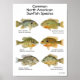 Études biologiques originales de la famille des poissons solaires par Thom Glace. Aquarelles transparentes.