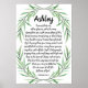 Offrez à quelqu'un avec cet élégant design de calligraphie à la main, mettant en vedette la prière bien-aimée de saint Paul des Éphésiens 3:16-19 en lettres noires, "Je prie pour que de ses richesses glorieuses, il vous fortifie avec puissance par son Esprit dans votre être intérieur, afin que le Christ demeure dans votre coeur par la foi. Et je prie que vous, enracinés et établis dans l’amour, ayez le pouvoir, avec tout le peuple saint du Seigneur, de comprendre à quel point l’amour du Christ est large, long, haut et profond, et de connaître cet amour qui dépasse la connaissance, afin que vous soyez remplis à la mesure de toute la plénitude de Dieu." (Nouvelle version internationale). Au-dessus du texte de prière, il y a un espace réservé pour le nom de votre enfant ou du destinataire avec des accents de laurier vert peint à la main sur le dessus et le bas.