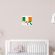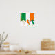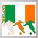 Trois joueurs de football jouent devant le drapeau irlandais. Nom du pays L'Irlande est sur le côté