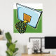 Un panier de basket monté sur une planche à l'arrière. Ce design semble vraiment efficace sur ces Poster