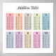 Ajoutez une affiche de table aux couleurs pastel pour les enfants afin de comprendre les ajouts de 1 à 10 de manière amusante. Parfait pour une salle de classe ou une décoration de chambre pour enfants !