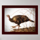 Cette affiche présente une jeune dinde sauvage mâle adulte (Meleagris gallopavo silvestris). Il a une gorge rouge, le cou et les wattles et ses plumes ont des zones de rouge, violet, vert, cuivre, brun, bronze et d'iridescence en or. C'était l'espèce de dinde rencontrée pour la première fois dans la nature par les Puritains. Les dindes sont un symbole classique de la période des Fêtes de Thanksgiving.