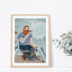Fête des pères moderne et drôle Hipster marin Bloke en bateau avec chien pour un père coriace qui aime l'eau et la mer. OEuvre originale de Caroline Bonne Müller