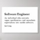 Cette affiche humoristique définit ce qu'est un ingénieur logiciel : "Un individu qui convertit des spécifications vagues et des attentes irréalistes en logiciels utilisables."