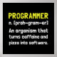Les développeurs, les ingénieurs, les nerds et les geeks savent que les programmeurs sont des organismes qui transforment la pizza et la caféine en logiciel. Découvrez ce drôle de design personnalisé sur tee - shirts, chemises, tasses, coques, cadeaux et vêtements.