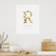 Delicate Romantic Floral R Letter in Gold Glitter Effect Posters Decor for Couples.